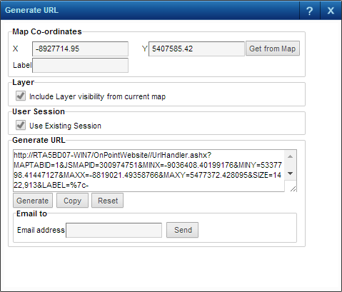 6. Click Generate. This creates a URL that contains the coordinates, label and features you have chosen.