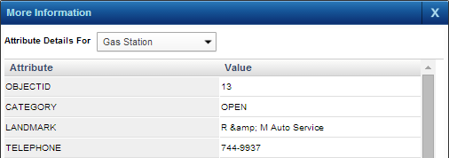 1. On the Map Tools pane, click the WMS Identify buttonand click any feature on the map. The More Information window opens showing any additional information for this feature.